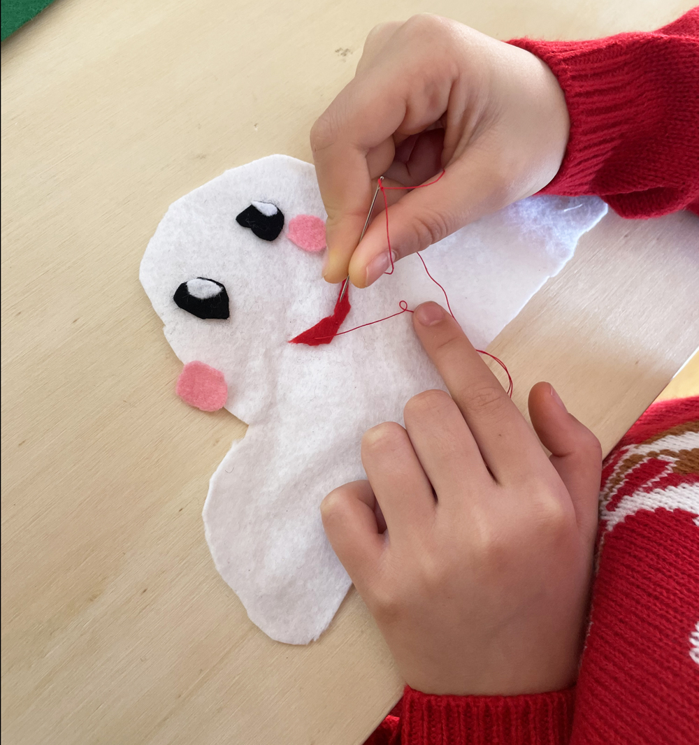Manipuler tissu, fil et aiguille développe la motricité fine et la dextérité.